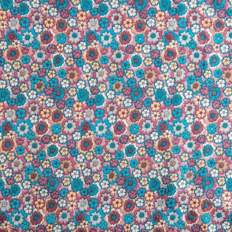 Плательно-рубашечная ткань из натурального хлопка в мелкий абстрактно-цветочный рисунок. Ткань легкая, тонкая, хорошо "дышит", слегка держит форму, не сухая, не прозрачная. Подойдет для пошива летнего платья, летящей юбки, блузы, сарафана, комбинезона или рубашки, а также для домашней одежды.