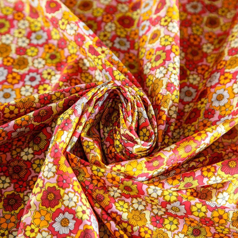 Плательно-рубашечная ткань из натурального хлопка в мелкий абстрактно-цветочный рисунок. Ткань легкая, тонкая, хорошо "дышит", слегка держит форму, не сухая, не прозрачная. Подойдет для пошива летнего платья, летящей юбки, блузы, сарафана, комбинезона или рубашки, а также для домашней одежды.