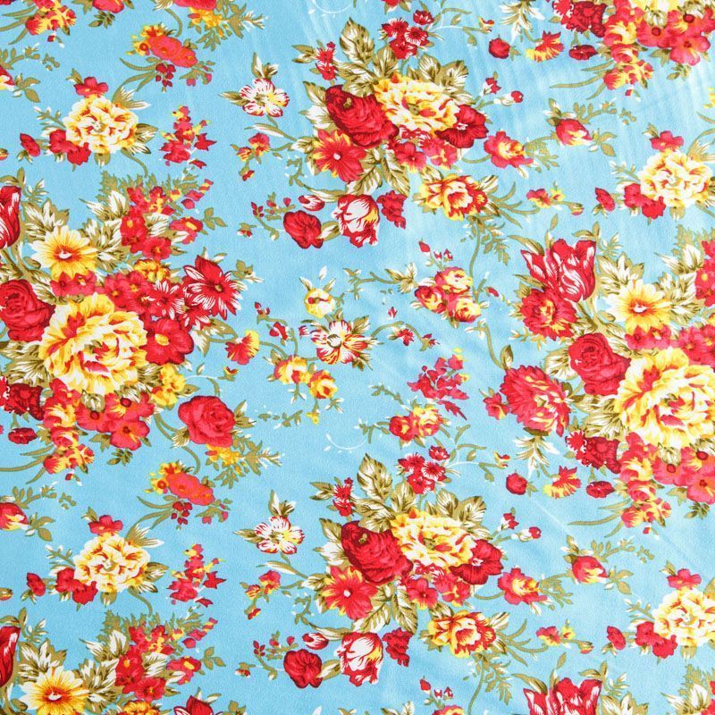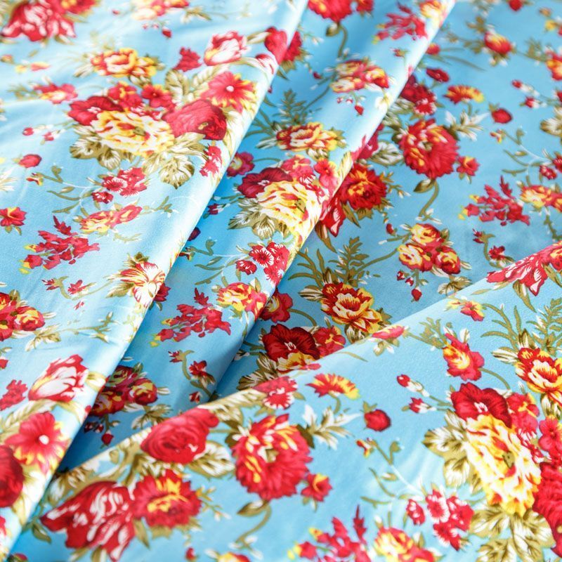 Плательно-рубашечная ткань из натурального хлопка с ярким цветочным принтом. Ткань легкая, тонкая, хорошо "дышит", слегка держит форму, не сухая, не прозрачная. Подойдет для пошива летнего платья, летящей юбки, блузы, сарафана, комбинезона или рубашки, а также для домашней одежды.