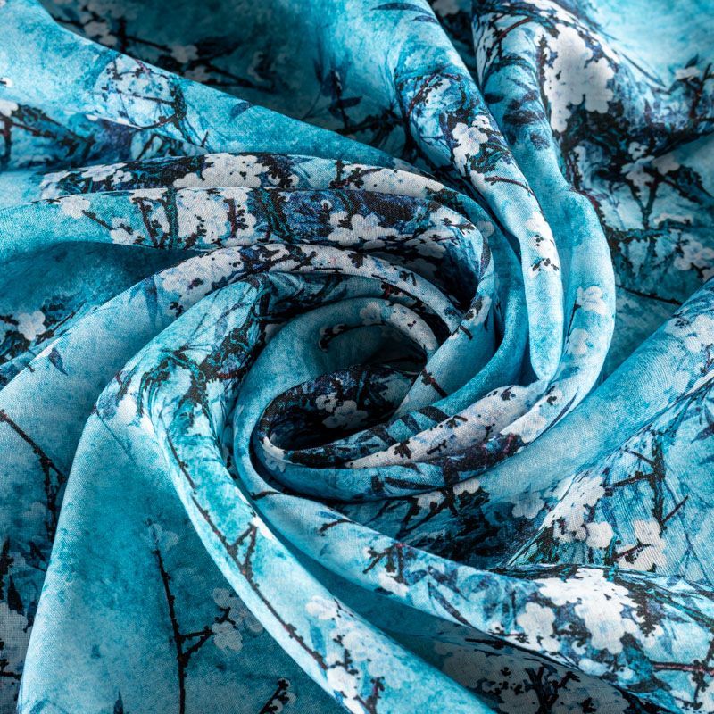 Плательно-блузочная ткань из натурального хлопка с крупным цветочным рисунком в бело-голубых оттенках. Ткань легкая, тонкая, хорошо "дышит", мягкая, слегка прозрачная. Подойдет для пошива летнего платья, летящей юбки, блузы, сарафана или рубашки.