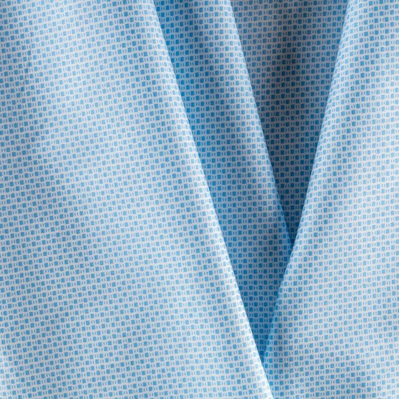 На белом фоне мелкий геометрический рисунок голубого цвета.