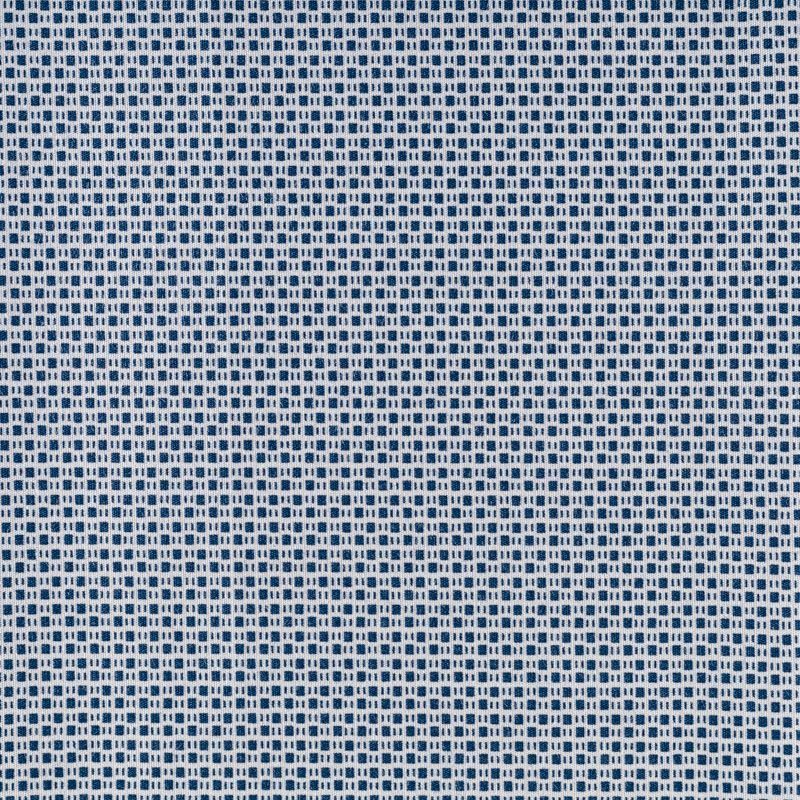 На белом фоне мелкий геометрический узор синего цвета визуально создает эффект мелкой клетки.