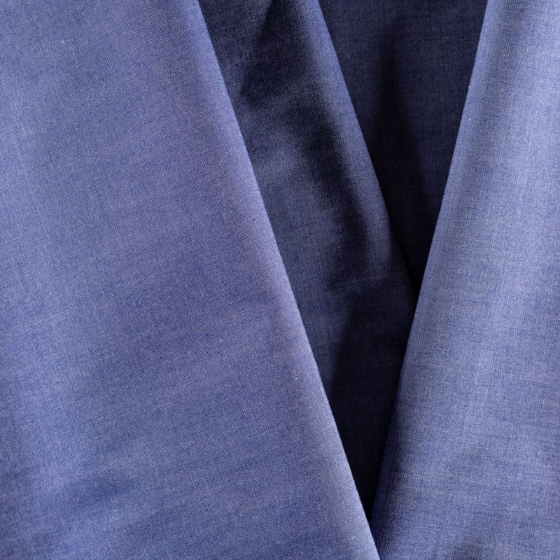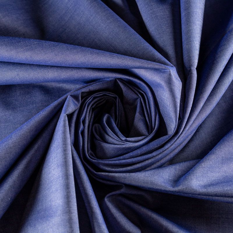 Хлопок рубашечный насыщеного синего цвета с фиолетовым оттенком. Полотно легкое, средней плотности, очень нежное и пластичное, не держит форму. Цвет достаточно яркий, но в то же время спокойный, не вызывающий. Материал отлично драпируется, формируя мягкие складки. Подойдет для прямых, полуприлегающих, расклешенных моделей платьев, сарафанов, а также юбки, туники, платье-рубашки.