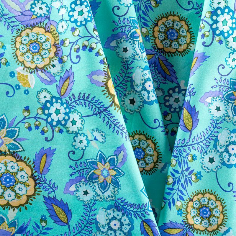 Плательно-рубашечный натуральный хлопок от французского дизайнера с цветочным орнаментом в сине-фиолетовых тонах на "вкусном" мятном фоне. Ткань имеет плотное переплетение, матовую гладкую поверхность, хорошо держит форму, не прозрачная. Подойдет для пошива рубашек, платья-рубашки, юбки, сарафана, туники, домашней одежды.