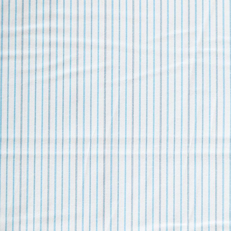 Плательно-рубашечный хлопок в белого цвета в голубую полоску. Ткань мягкая, лёгкая, непрозрачная, пластичная и приятная к телу, хорошо драпируется, имеет гладкую матовую поверхность и сатиновое плетение. Прекрасно подойдет как для пошива платья-рубашки, сарафана, платьев различных фасонов, туники, топа, летнего костюма, комбинезона, мужкой и детской одежды.