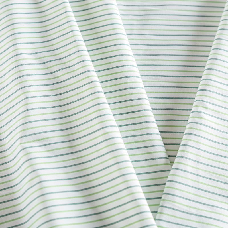 Плательно-рубашечный хлопок в белого цвета освежает салатово-зеленая полоска. Ткань мягкая, лёгкая, непрозрачная, пластичная и приятная к телу, хорошо драпируется, имеет гладкую матовую поверхность и сатиновое плетение. Прекрасно подойдет как для пошива платья-рубашки, сарафана, платьев различных фасонов, туники, топа, летнего костюма, комбинезона, мужкой и детской одежды.