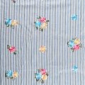Плательно-блузочный хлопок белого цвета в серо-голубую полоску декорирован яркой цветочной вышивкой. Полотно средней плотности, слегка просвечивает, очень нежное и пластичное, держит форму. Материал отлично драпируется, формируя мягкие складки. Подойдет для прямых, полуприлегающих, расклешенных моделей платьев, сарафанов, а также юбки, туники, платье-рубашки.
