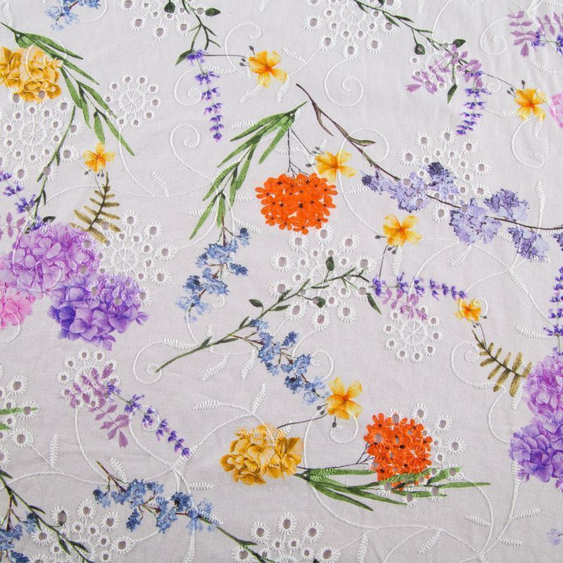 Хлопок с вышивкой 067-20129 белый принтованный в Нарьян-Маре