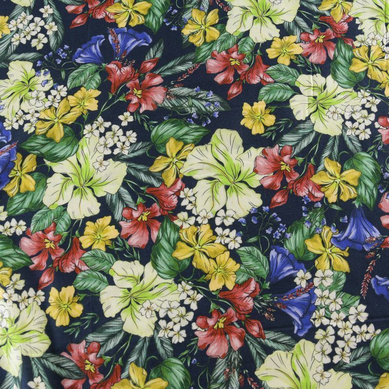 Хлопок стрейч 063-12073 темно-синий принтованный