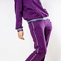 Женский костюм из 3-х ниточного футера с начесом насыщенного пурпурного оттенка. Комплект состоит из худи и штанов. Худи с оригинальным кроем капюшона: целькроенная стойка с кулисой, которая фиксируется на декоративный шнурок. Рукава спущенные, 2 врезных кармана. Манжеты на рукавах и низ худи оформлены широкой резинкой с люрексом. Штаны зауженного кроя, пояс на резинке, карманы расположены в боковых швах. Костюм предназначен для прогулок, активного отдыха и занятий спортом.