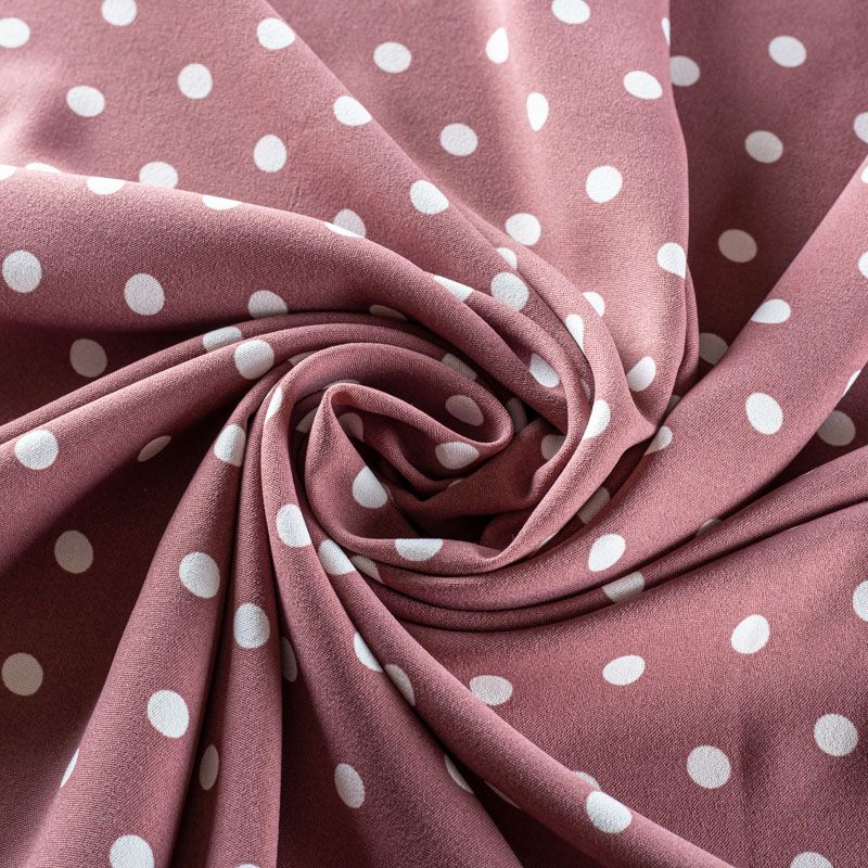 Плательный креп с принтом в горох. Ткань средней плотности, не толстая, пластичная, поверхность полотна матовая, с характерной мелкозернистой фактурой, прочная, хорошо драпирующаяся. Превосходно подойдет для пошива стильного костюма, юбки, платья, комбинезона, топа, брюк.