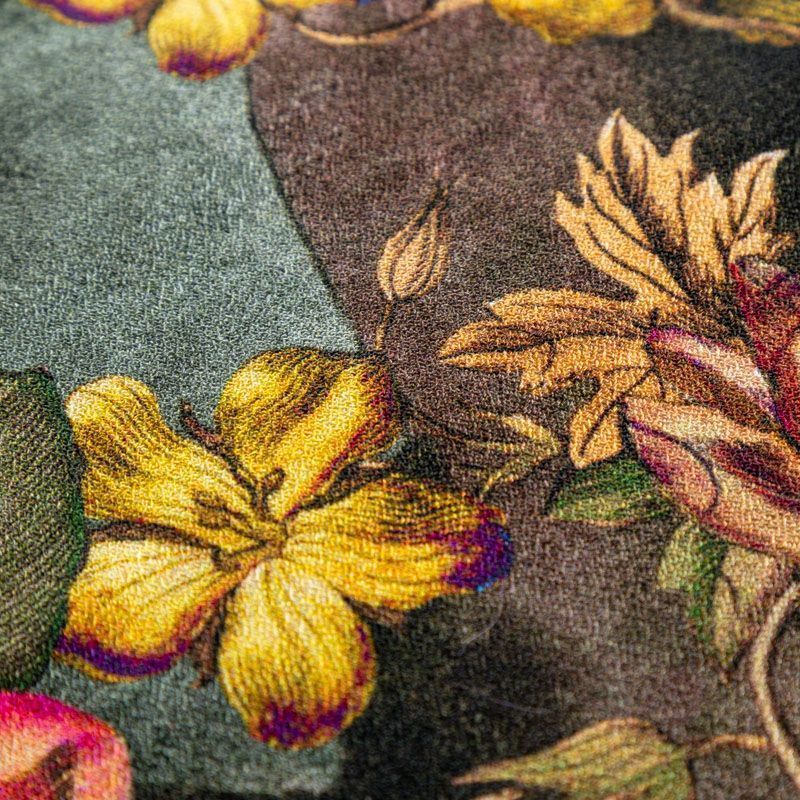 Итальянский креп плательной плотности оттенка хаки с фантазийным цветочным принтом. Поверхность матовая и фактурная, ткань малосминаемая, тянется за счет эластана в составе, красиво драпируется, струится и дает объемную складку, не просвечивает.Идеально подойдет для шикарного платья, блузы, юбки, комбинезона, брюк свободного кроя.