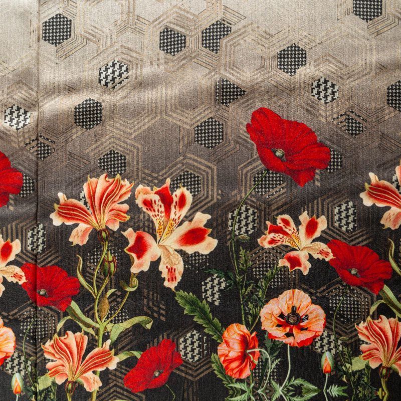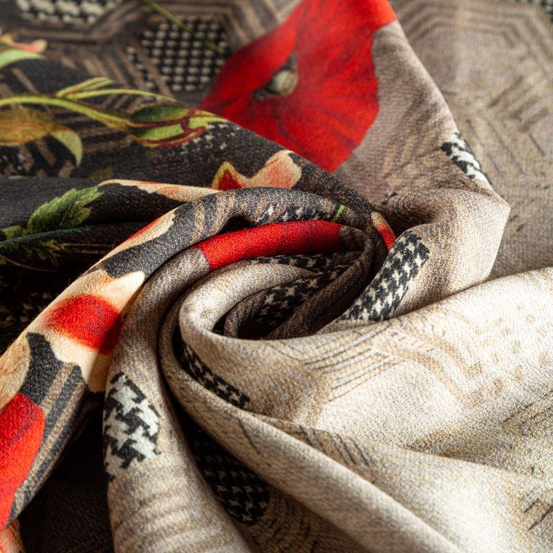 Итальянский креп плательной плотности с реалистичным цветочным принтом. Поверхность матовая и фактурная, ткань малосминаемая, тянется за счет эластана в составе, красиво драпируется, струится и дает объемную складку, не просвечивает.Идеально подойдет для шикарного платья, блузы, юбки, комбинезона, брюк свободного кроя.