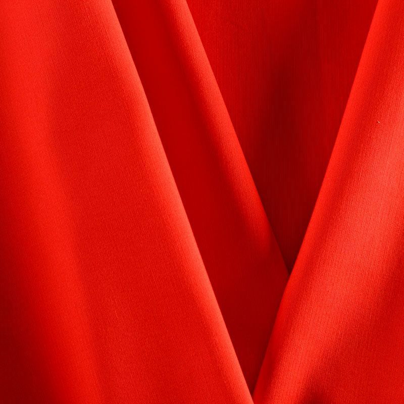 Итальянский креп костюмно-плательной плотности в красном оттенке, поверхность матовая, слегка зернистая. Ткань мягкая, пластичная, образует мягкие фалды, не просвечивает. Подойдет для пошива весенне-осеннего костюма, платья, комбинезона, юбки, брюк.