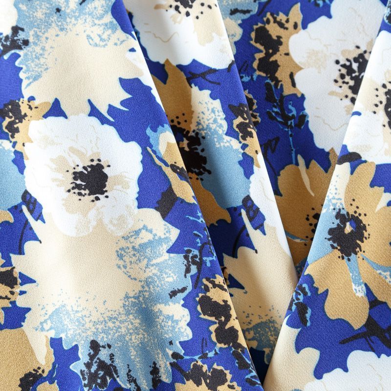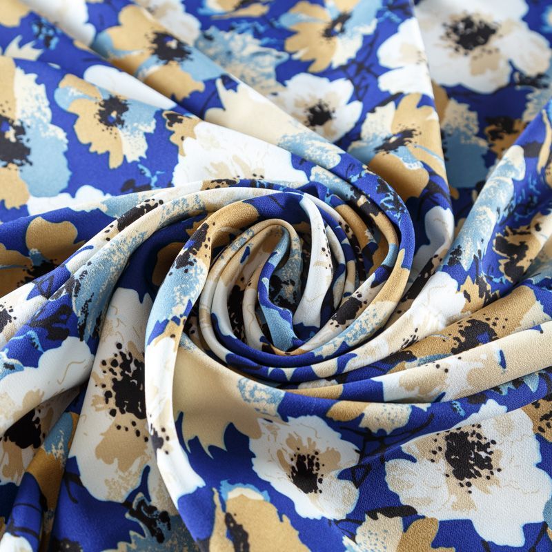 Креп 026-08406 синий электрик принтованный в Нарьян-Маре