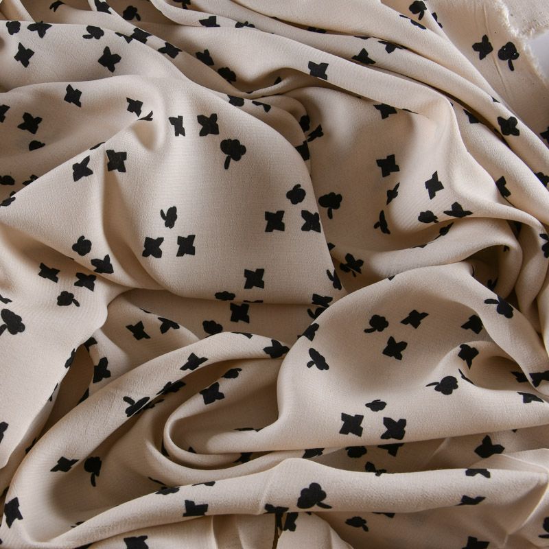 Креп 026-11959 экрю принтованный