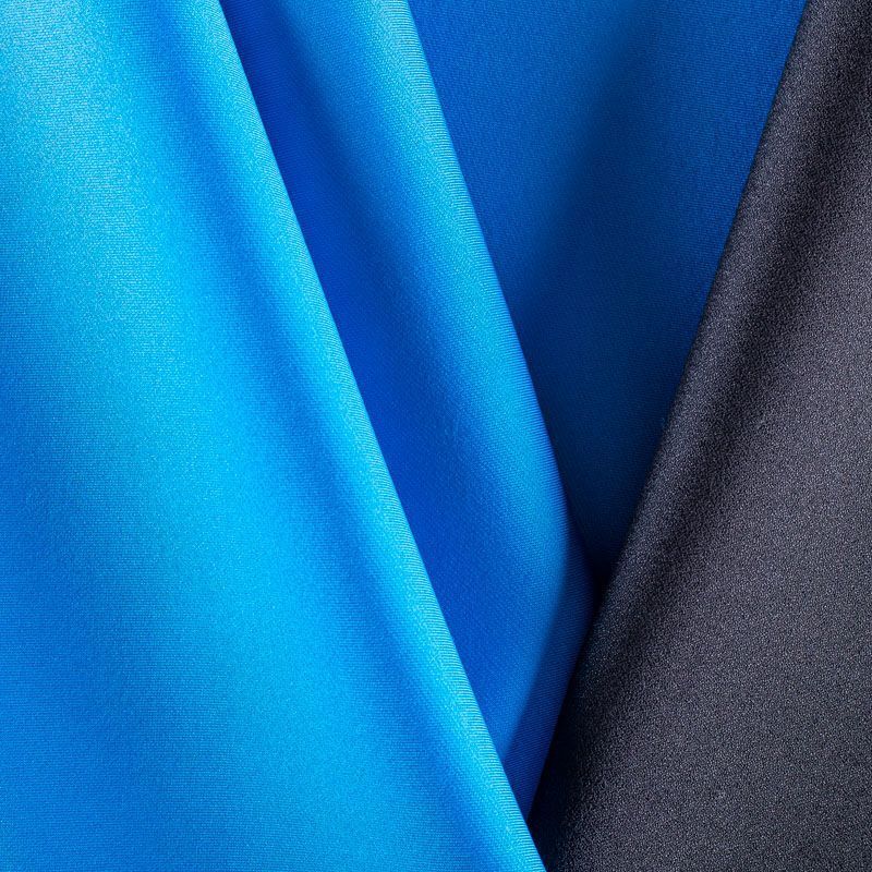 Итальянский двухсторонний вискозный креп. Обе стороны креповые, гладкие, матовые, лицевая - лазурно-голубая, изнанка - черная. Ткань