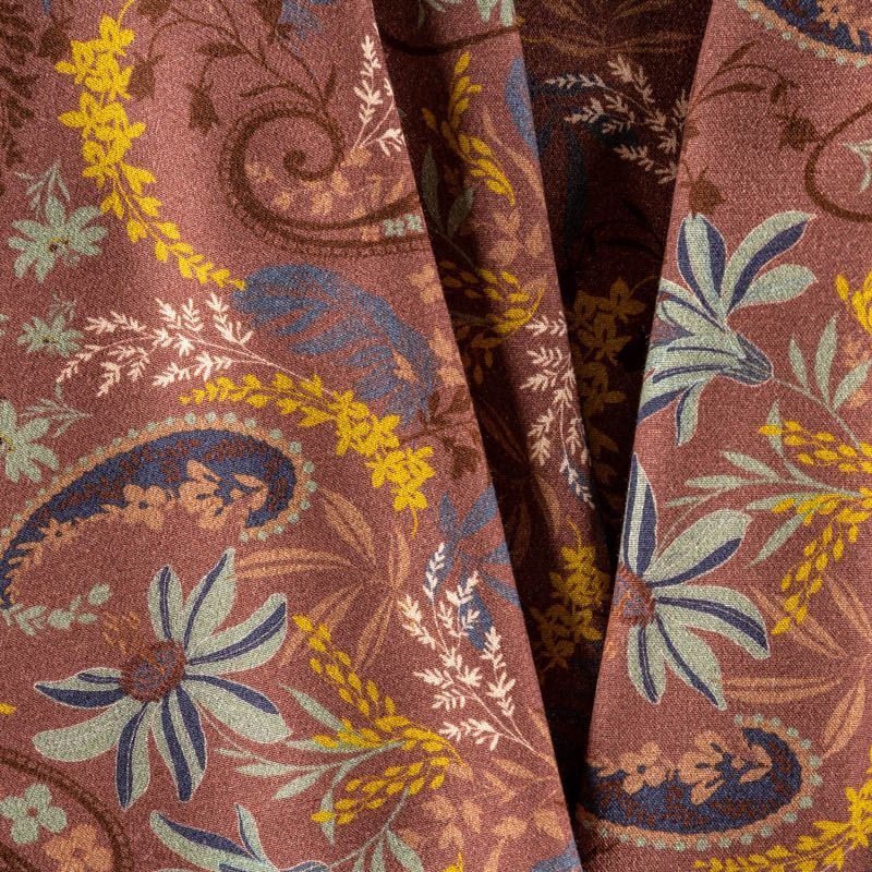 Плательно-блузочная ткань из вискозы с креповым плетением. Ткань средней плотности, имеет зернистую фактуру и матовую поверхность, практически не просвечивает, пластичная, хорошо тянется и драпируется мягкими складками, струится. Подходит для пошива платья и сарафана, юбки, блузки, туники, топа, комбинезона.
