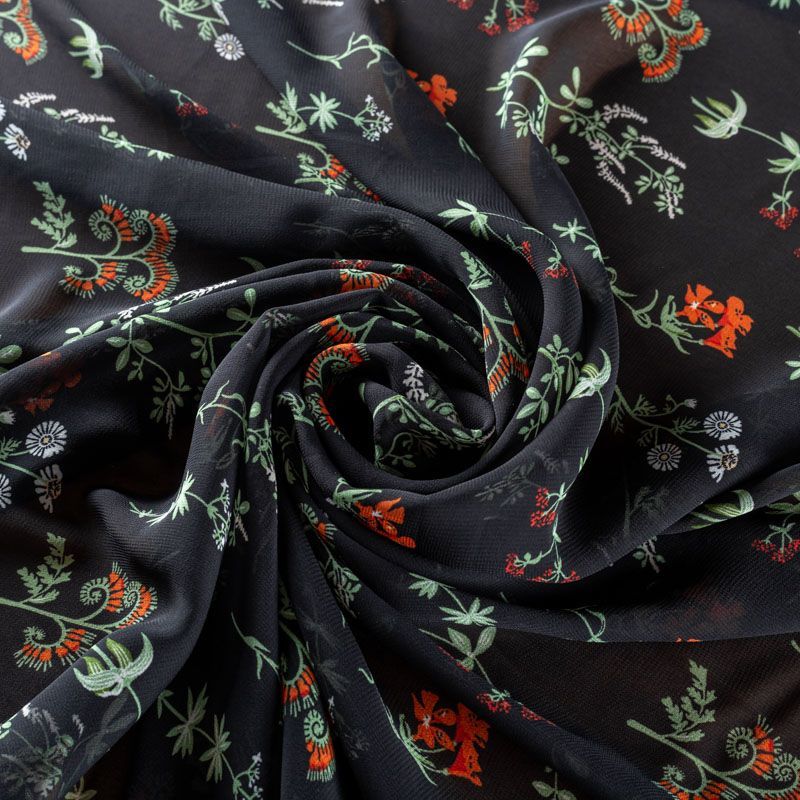 Креп-шифон 027-01276 черный принтованный в Нарьян-Маре