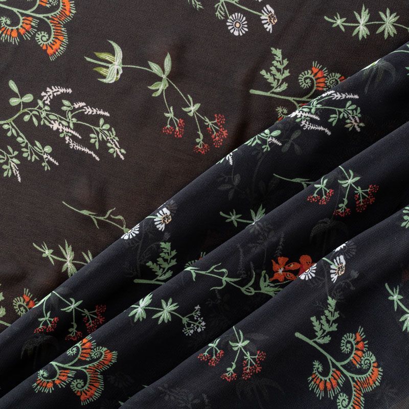 Креп-шифон 027-01276 черный принтованный