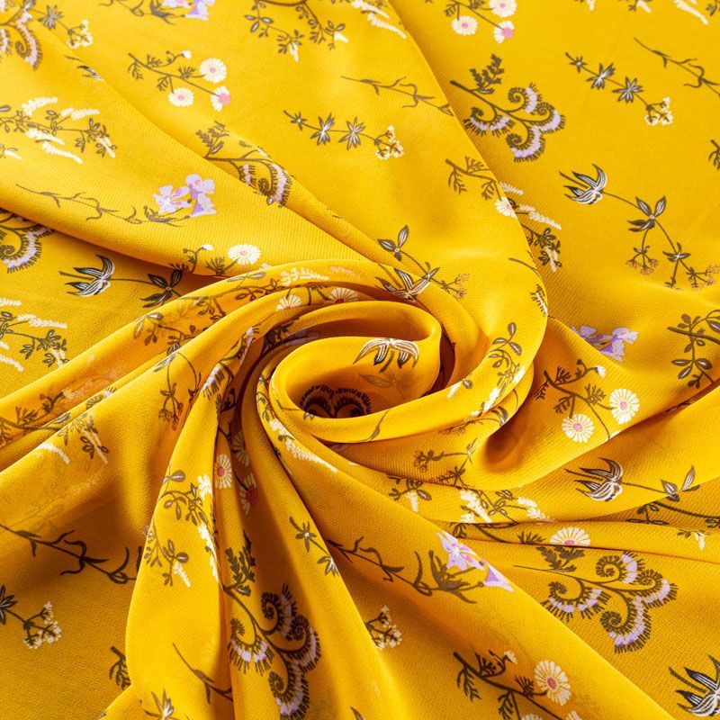 Креп-шифон 027-01277 желтый принтованный