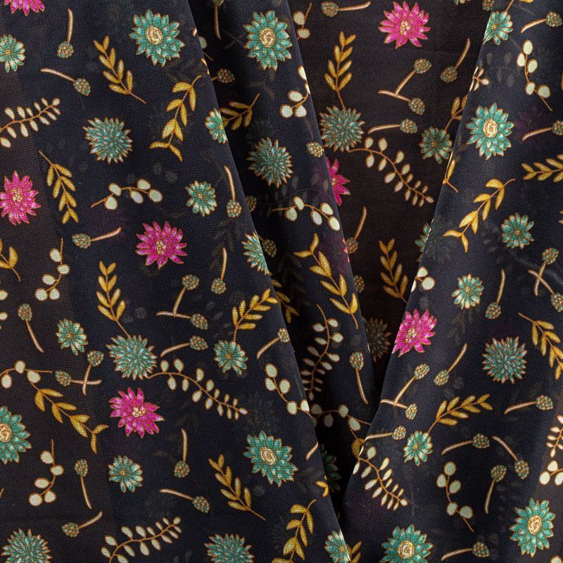 Креп-шифон 027-01282 темно-синий принтованный