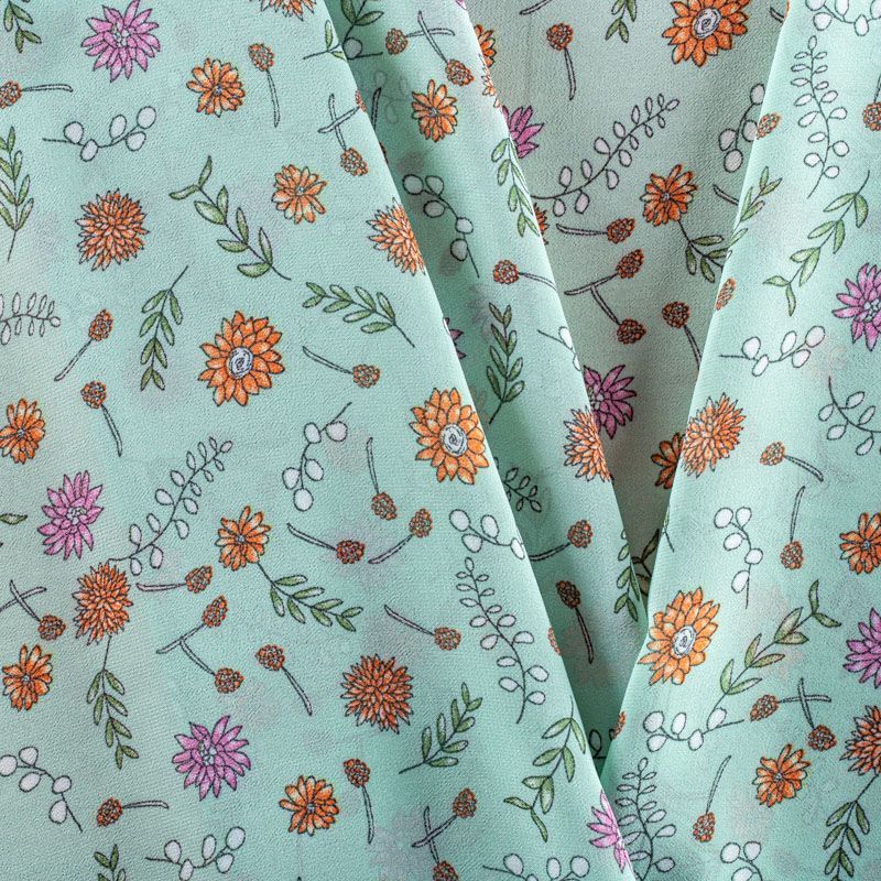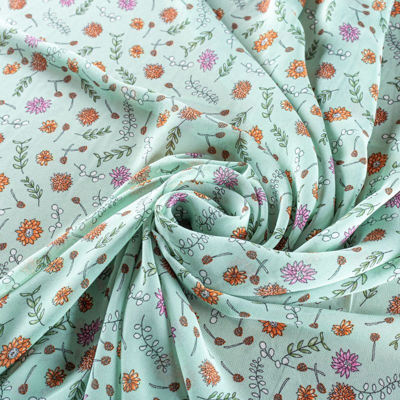 Креп-шифон 027-01285 мятно-зеленый принтованный в Нарьян-Маре
