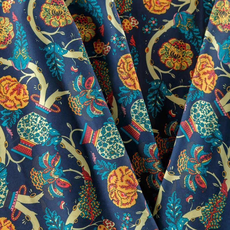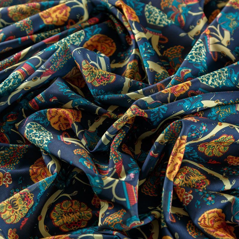 Креп-шифон 027-08366 темно-синий принтованный в Нарьян-Маре
