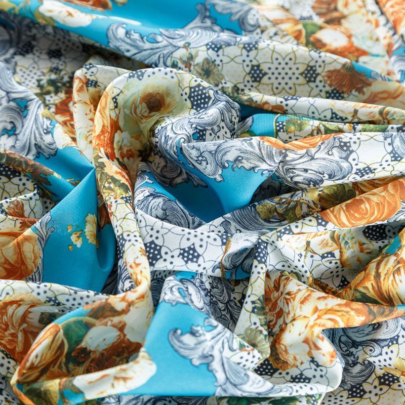 Креп-шифон К07-439 голубой принтованный в Нарьян-Маре