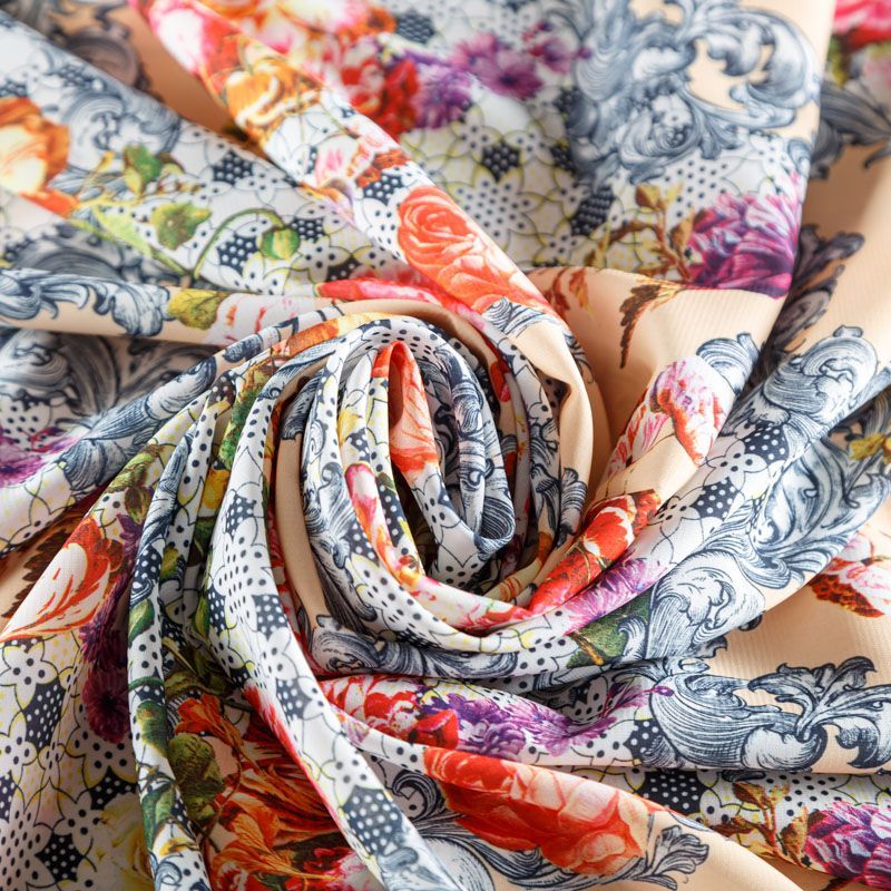 Креп-шифон К07-441 сливочный принтованный в Нарьян-Маре
