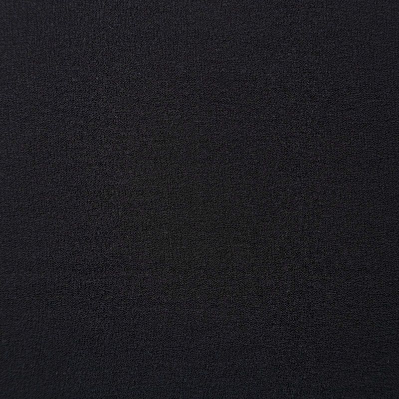 Итальянский креп-шифон черного оттенка, легкий, воздушный, мягкий и нежный, прекрасно драпируется, тянется, приятен к телу, прозрачный, требуется подклад. Текстура матовая с умеренным блеском. Идеален для нежных платьев летящих силуэтов, топов, туник, блузок, юбок с роскошными драпировками и воланами.