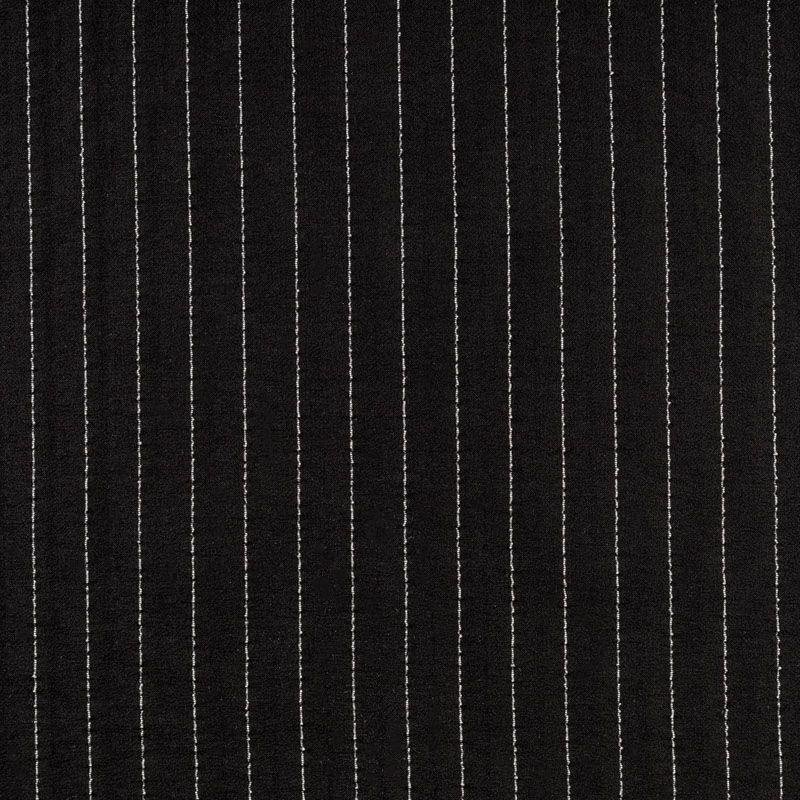 Воздушный плательно-блузочный шелк с креповой фактурой. Ткань просвечивает, тонкая, легкая, мягкая, зернистая на ощупь, пластичная, великолепно драпируется мягкими складками, ниспадает, не обладает эластичностью. При пошиве изделий может потребоваться подкладка. Идеален для платьев летящих силуэтов, топов, туник, блузок, юбок с роскошными драпировками и воланами. На черном фоне проходит белая креповая нить, расстояние между полосками 1 см.