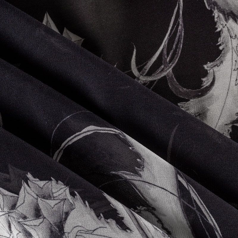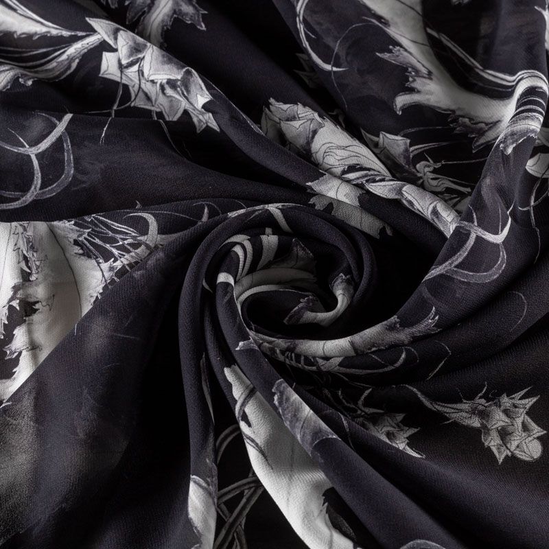 Креп-шифон натуральный К36-066 черный принтованный