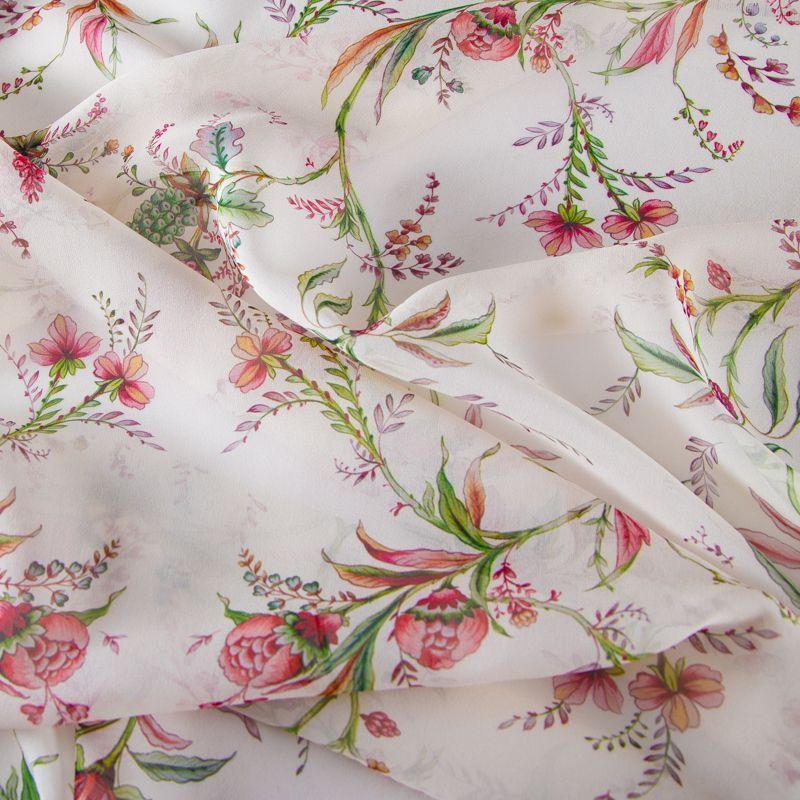 Креп-шифон шелковый 027-19851 молочный принтованный