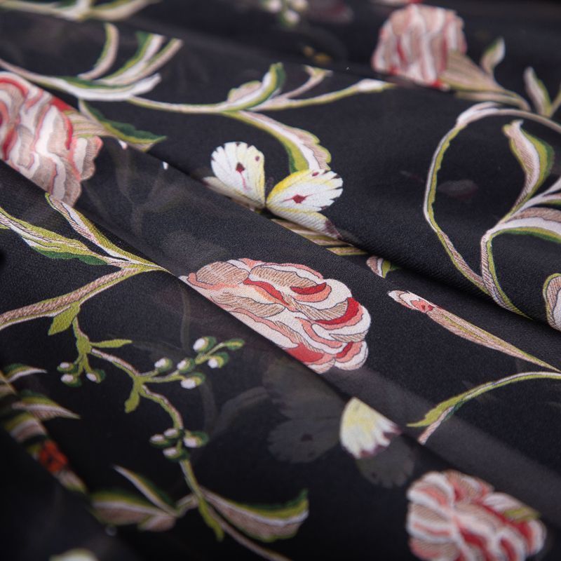 Креп-шифон шелковый 027-19853 черный принтованный