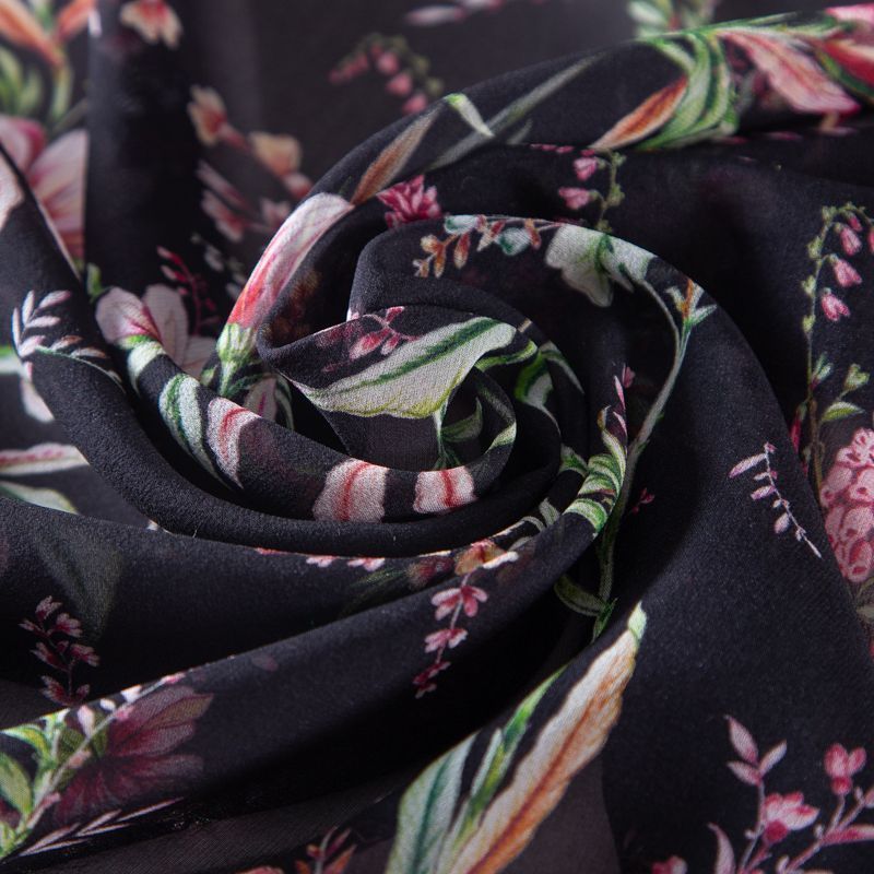 Креп-шифон шелковый 027-19926 черный принтованный в Нарьян-Маре