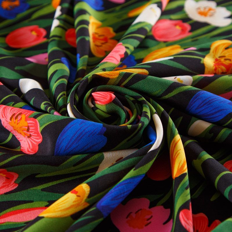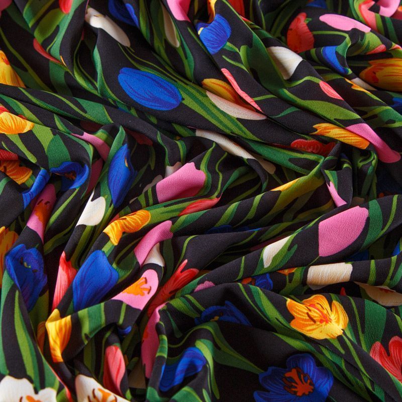 Креп-шифон стрейч 027-13093 черный принтованный в Нарьян-Маре