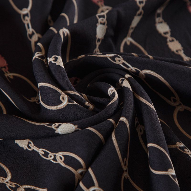 Итальянский вискозный креп-шифон из коллекции Hermes в черном цвете с традиционным для бренда принтом.