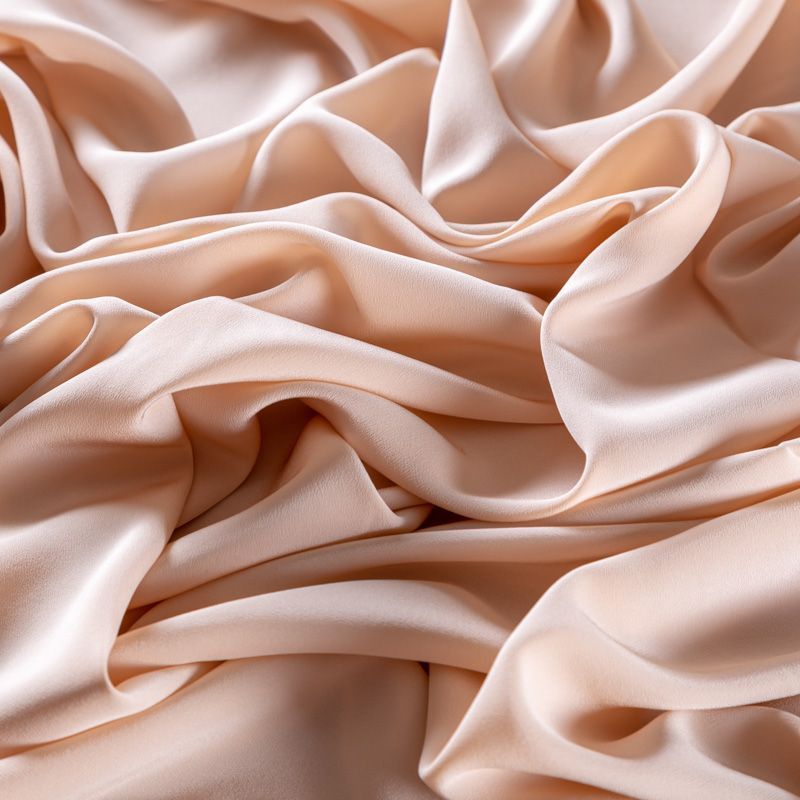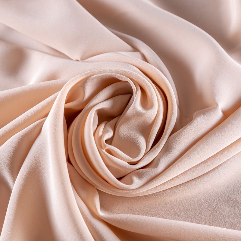 Итальянский натуральный шелковый крепдешин в молочном оттенке, фактурный, легкий и струящийся, слегка просвечивает, отлично драпируется, тянется за счет эластана в составе. Идеально подойдет для пошива платьев и сарафанов расклешенных моделей, с воланами, летящих юбок, топов, блузки, юбки, широких брюк, костюма в пижамном стиле.