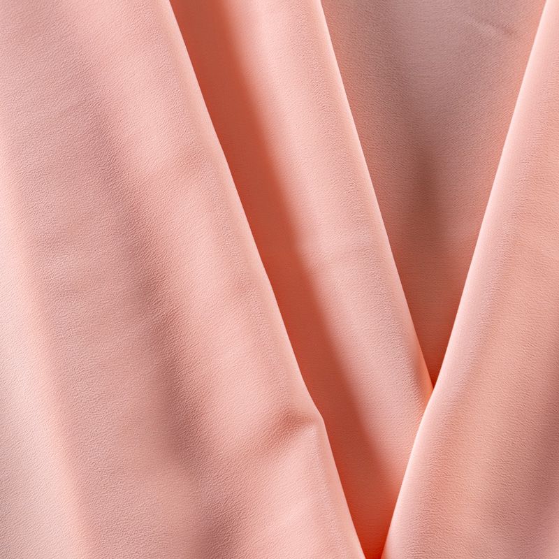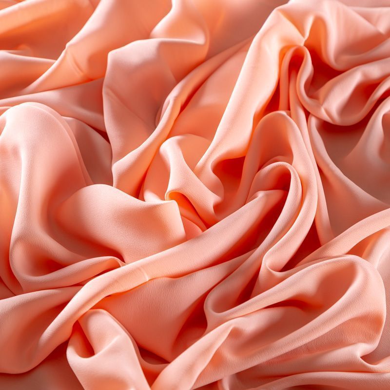 Итальянский натуральный шелковый крепдешин в персиковом оттенке, фактурный, легкий и струящийся, слегка просвечивает, отлично драпируется. Идеально подойдет для пошива платьев и сарафанов расклешенных моделей, с воланами, летящих юбок, топов, блузки, юбки, широких брюк, костюма в пижамном стиле.