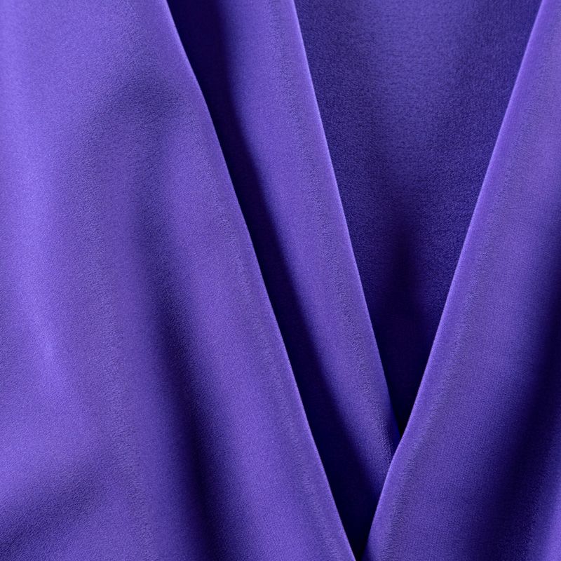 Итальянский натуральный шелковый крепдешин в красивом фиолетовом оттенке, слегка просвечивает, легкий и струящийся, отлично драпируется. Идеально подойдет для пошива платьев и сарафанов расклешенных моделей, с воланами, летящих юбок, топов, блузки, юбки, широких брюк, костюма в пижамном стиле.