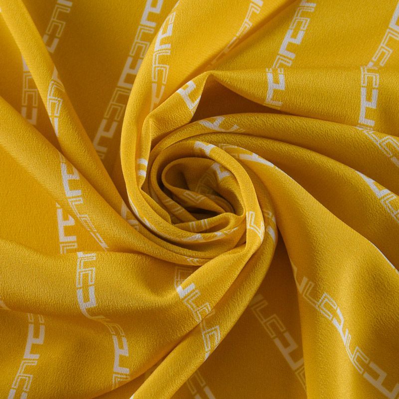 Крепдешин натуральный 028-11942 шафрановый принтованный в Нарьян-Маре