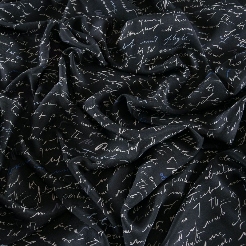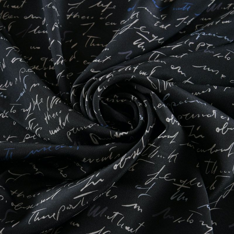 Крепдешин натуральный 028-11954 черный принтованный