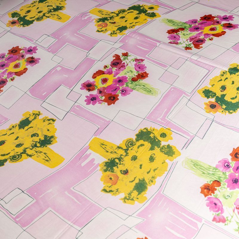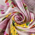 Крепдешин натуральный К01-045 розовый принтованный