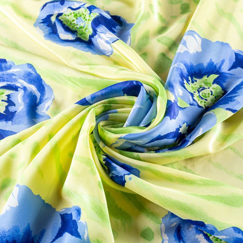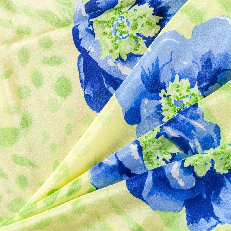Крепдешин натуральный К01-651 салатовый принтованный в Нарьян-Маре