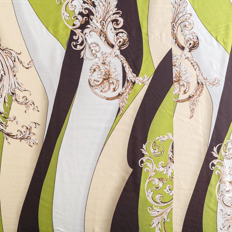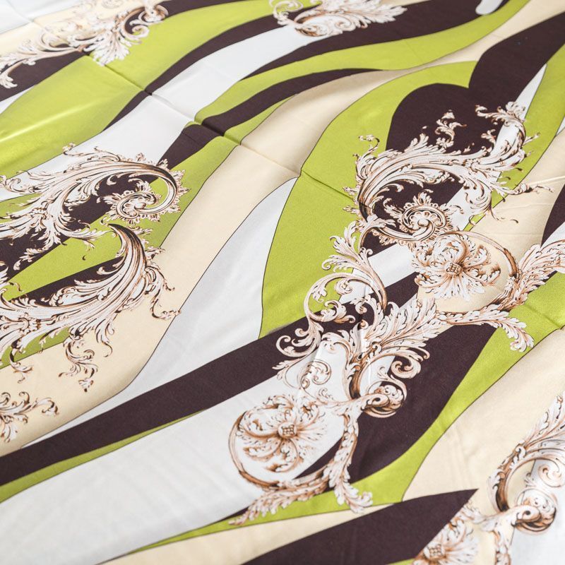 Крепдешин натуральный К01-763 молочно-лаймовый принтованный в Нарьян-Маре