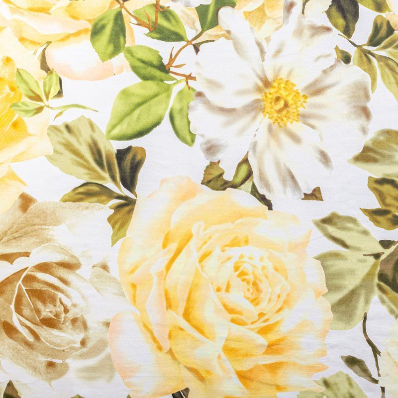 Натуральный шелковый крепдешин с матовой поверхностью, легкий, струящийся, хорошо драпируется. Цветочный принт выполнен бежево-оливковой гамме на белом фоне. Крепдешин прекрасно подойдет для пошива летнего сарафана, платья, блузки, костюма в пижамном стиле, широких брюк или юбки.