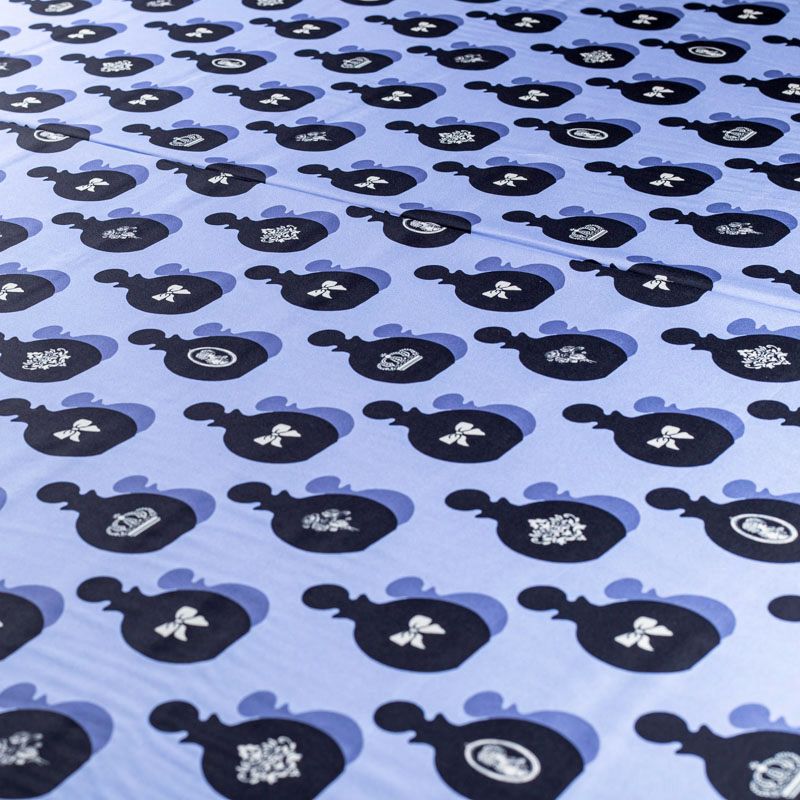 Итальянский крепдешин с матовой лицевой поверхностью со стилизованными флаконами духов на лавандовом фоне, тонкий, слегка прозрачный, отлично драпируется, легкий и струящийся. Идеально подойдет для пошива платьев и сарафанов расклешенных моделей, с воланами, летящих юбок, топов, блузки, костюма в пижамном стиле.