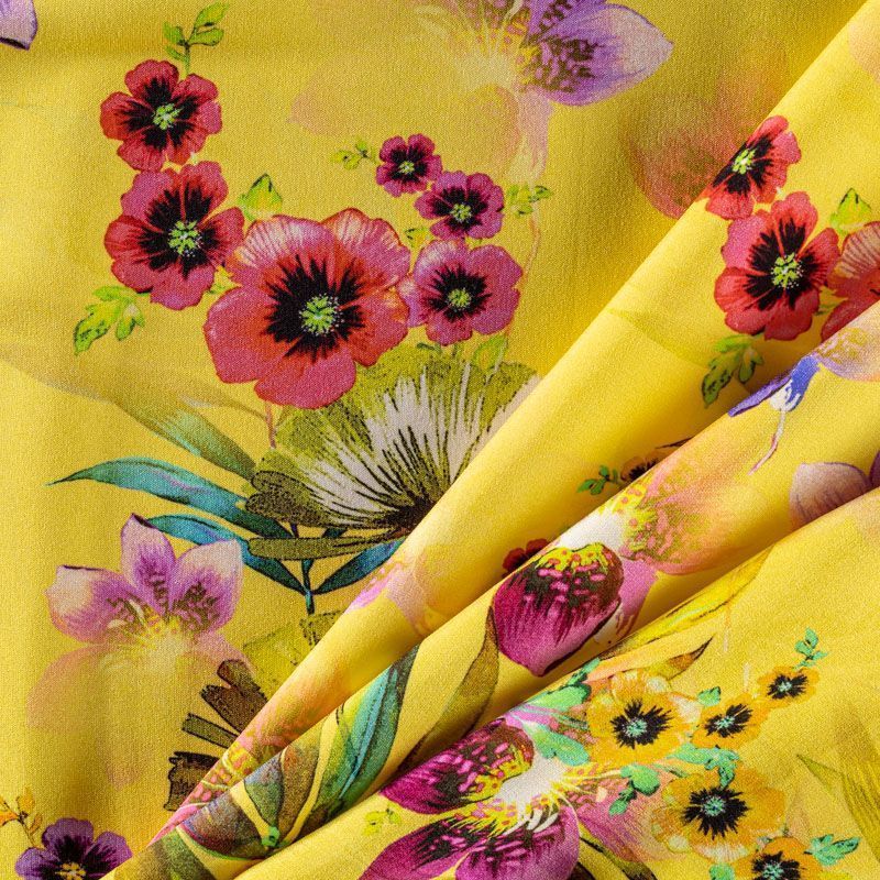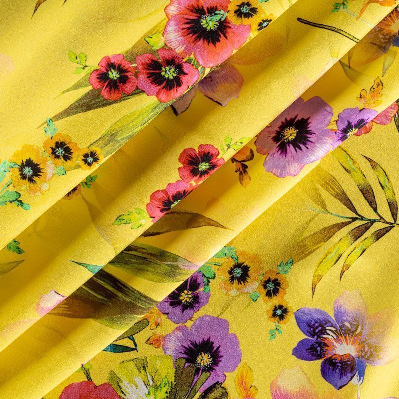 Крепдешин натуральный К13-878 желтый принтованный в Нарьян-Маре
