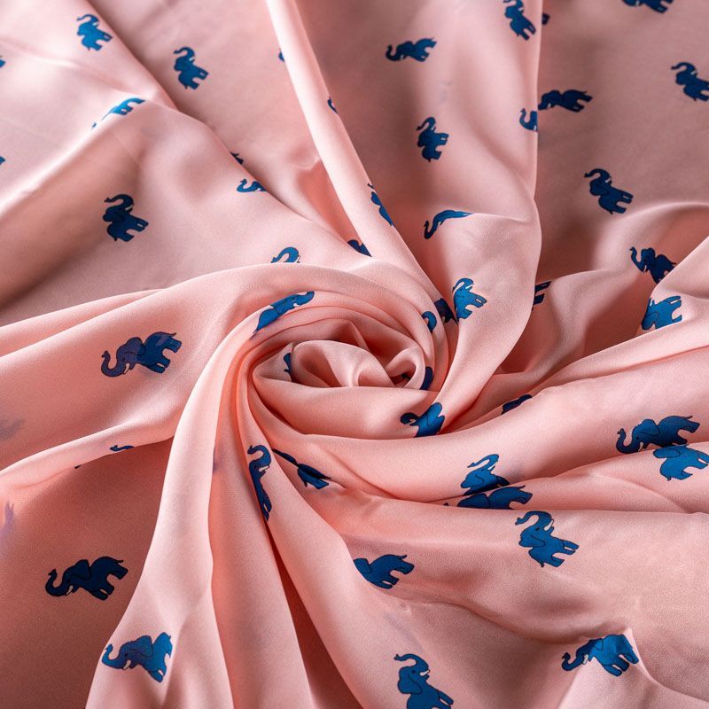 Крепдешин натуральный К14-056 персиково-розовый принтованный в Нарьян-Маре